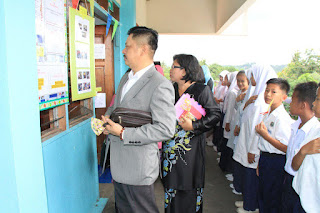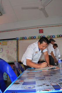 Ybhg Datuk Jake Jikulin Nointin, Ketua Sektor, Tuan Zaini dan Tuan Masly Wahip, Pegawai Pendidikan keningau menandatangani buku dan frame lawatan ke bilik Pendidikan Jasmani SK Pekan Keningau , di bawah guru penyelaras bilik PJ, Cikgu Setiawan.